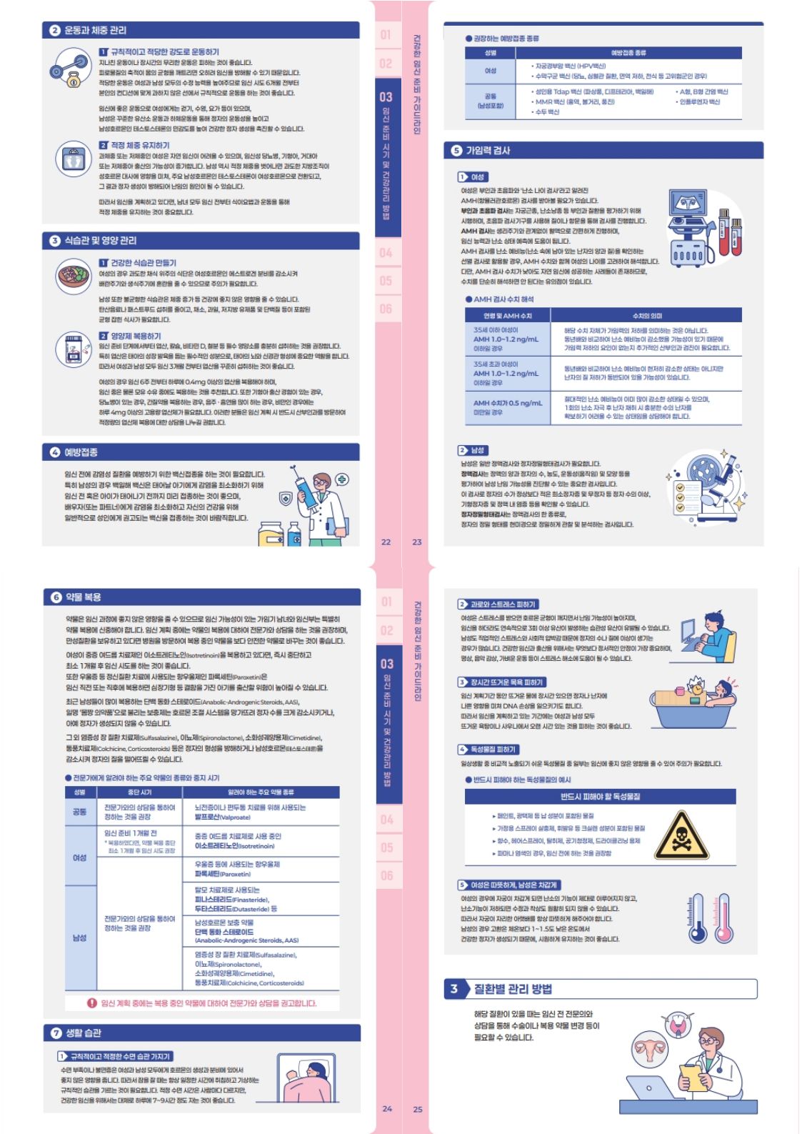 더욱 자세한 내용은 첨부파일인 '건강한 임신준비 가이드라인 안내서' 를 참고하여 주시기 바랍니다.